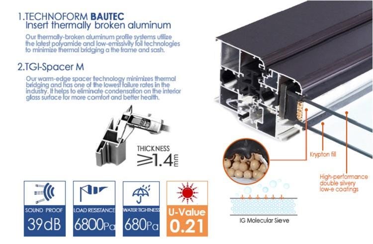 Our windows are equipped to perform with large continuous thermal breaks ranging from 1 3 8 to 2 3 8 throughout the frame compared to poorly insulated windows with only a thermal break if that.